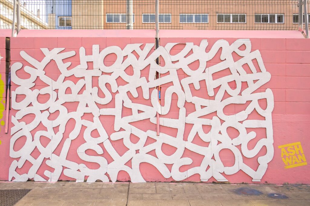 Murals en la façana exterior de la pista drassanes en el carrer Arc del Teatre amb Carrer Est.