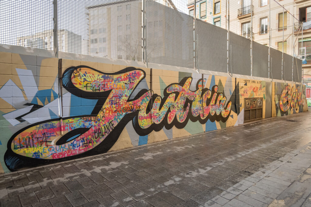 L’exterior de la pista Drassanes que es troba entre el carrer Arc del Teatre i Carrer Est i amb col·laboració amb l’alumnat de l’Institut Consell de Cent.
